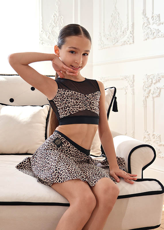 Топ с анималистичным принтом, позволит вам чувствовать себя уверенно и свободно во время тренировок и выступлений, сетчатая вставка обеспечивает отличную вентиляцию и свободу движений. Яркий леопардовый принт всегда в тренде и подчеркнет твою индивидуальность. Облегающий силуэт топа и легкая юбка выгодно подчеркивают достоинства фигуры, придавая уверенность и элегантность. Идеально подходит для различных видов танцев, от современных до латиноамериканских.